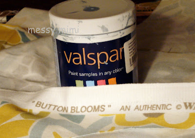 Then on to the paint. With this fabric there were several choices. I chose blue and was delighted to see that Valspar makes Waverly Fabric inspired paint. I bought a $3 sample bottle of Blue Sail – it was all I needed and still have a bit left for a smaller project. Amazing.