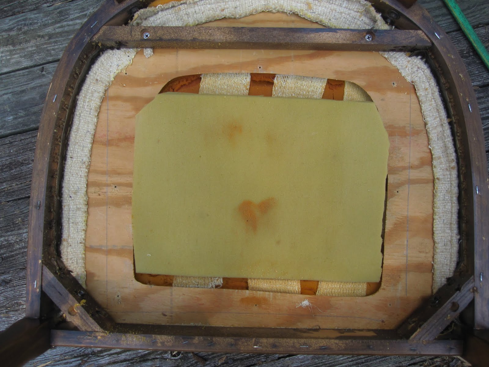 There was a board attached to another board that had a large cut out area. Made no sense to me and if any of you out there have an explanation for this I would LOVE to hear from you. Needless to say, all the old foam was tossed