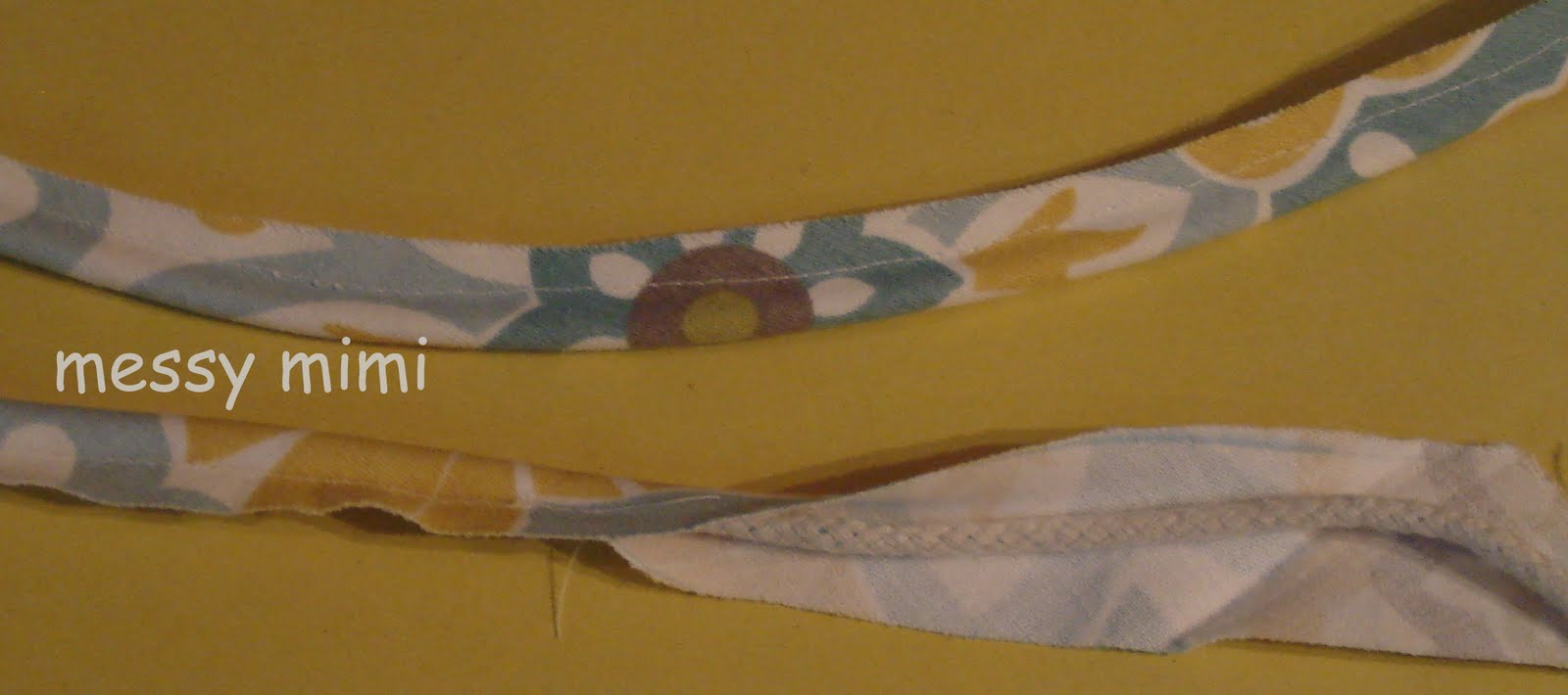Here you see how to sew the cording pieces together ( front sides facing  ) Then iron the seam open.