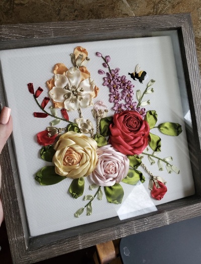 Turn your needlework into wall art — mount stitched patches and motifs into a shadow box for the display.
